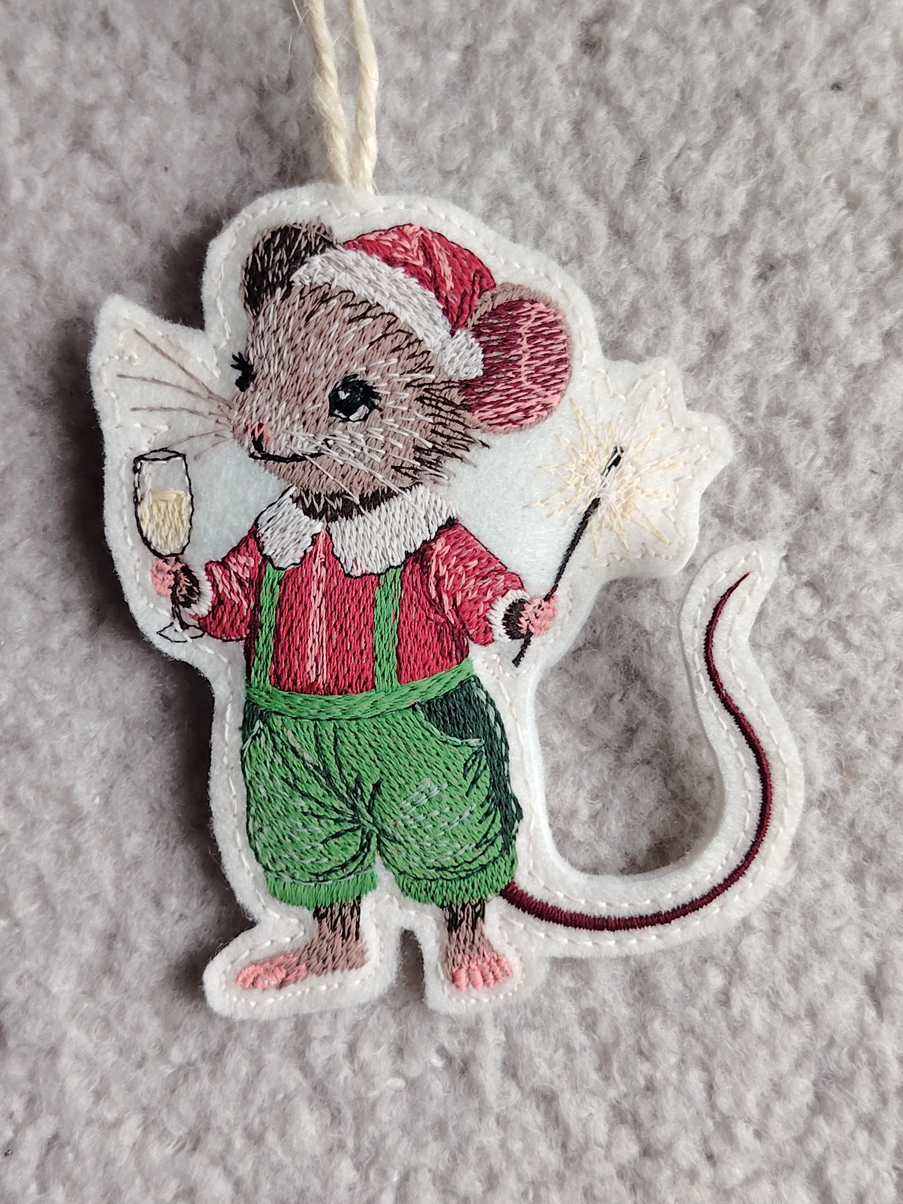 Бродирано коледно украшение, което ще придаде топлина и уникален стил на вашата празнична украса. Играчка мишле, височина 9см