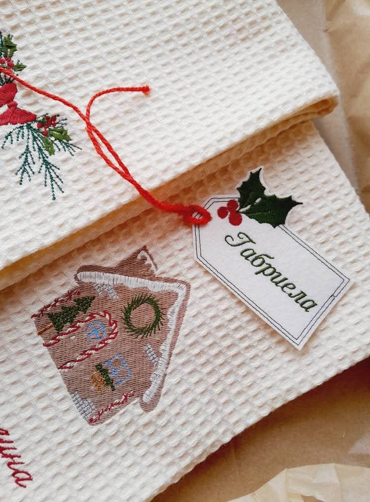 Бродирано етикетче за подарък, може да съдържа до 3 имена или надпис "сем.....". Изработено от филц. Моля, напишете името в полето за коментар към поръчката.